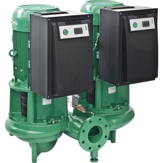 Электронно регулируемый сдвоенный насос с сухим ротором в исполнении Inline, с фланцевым соединением и автоматической регулировкой мощности